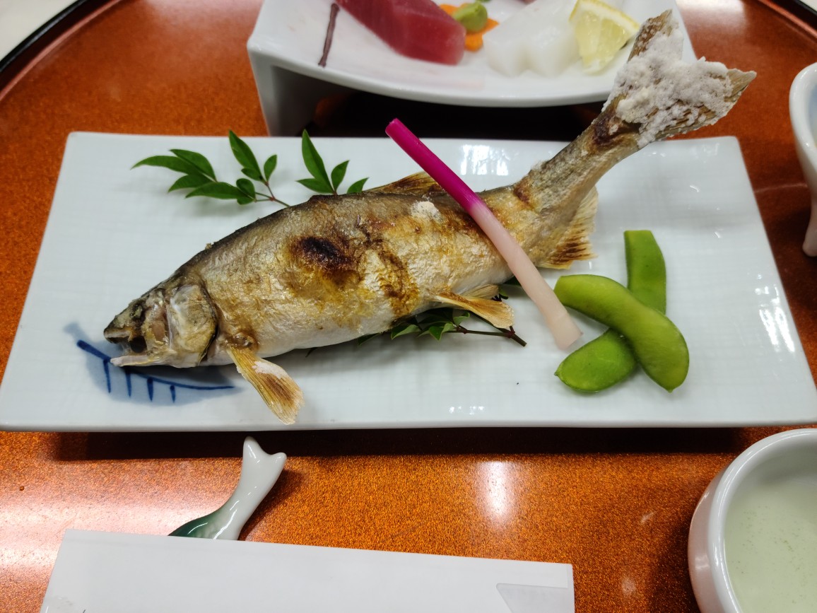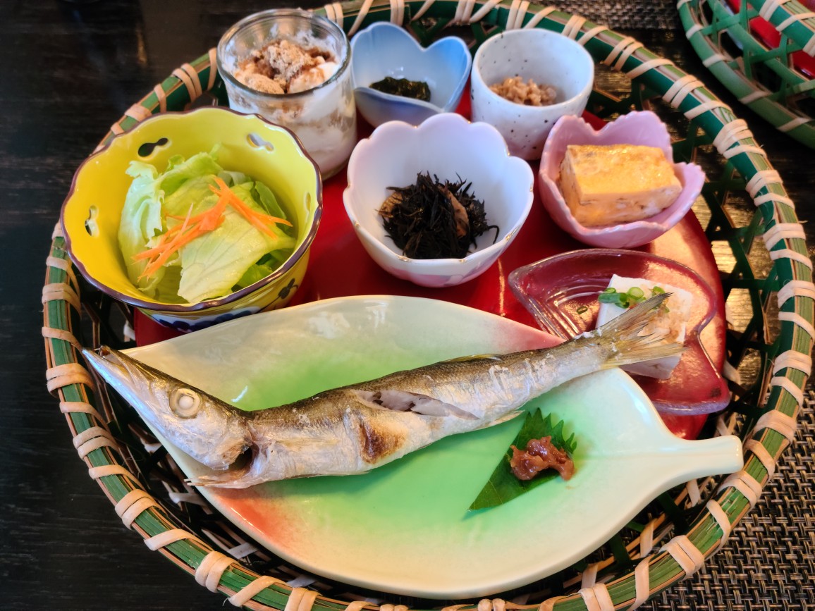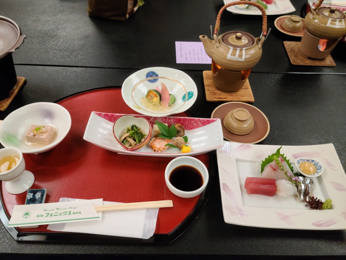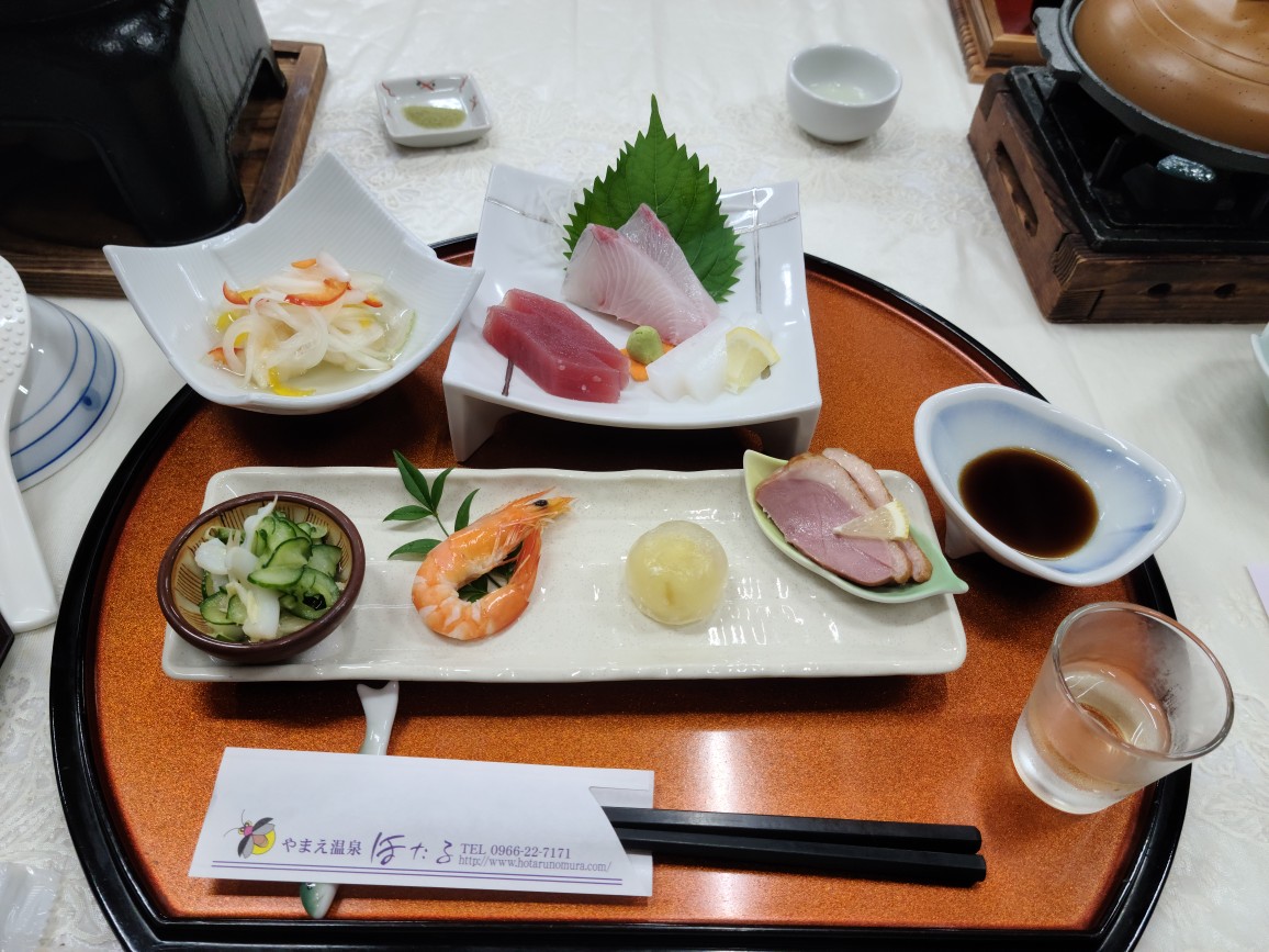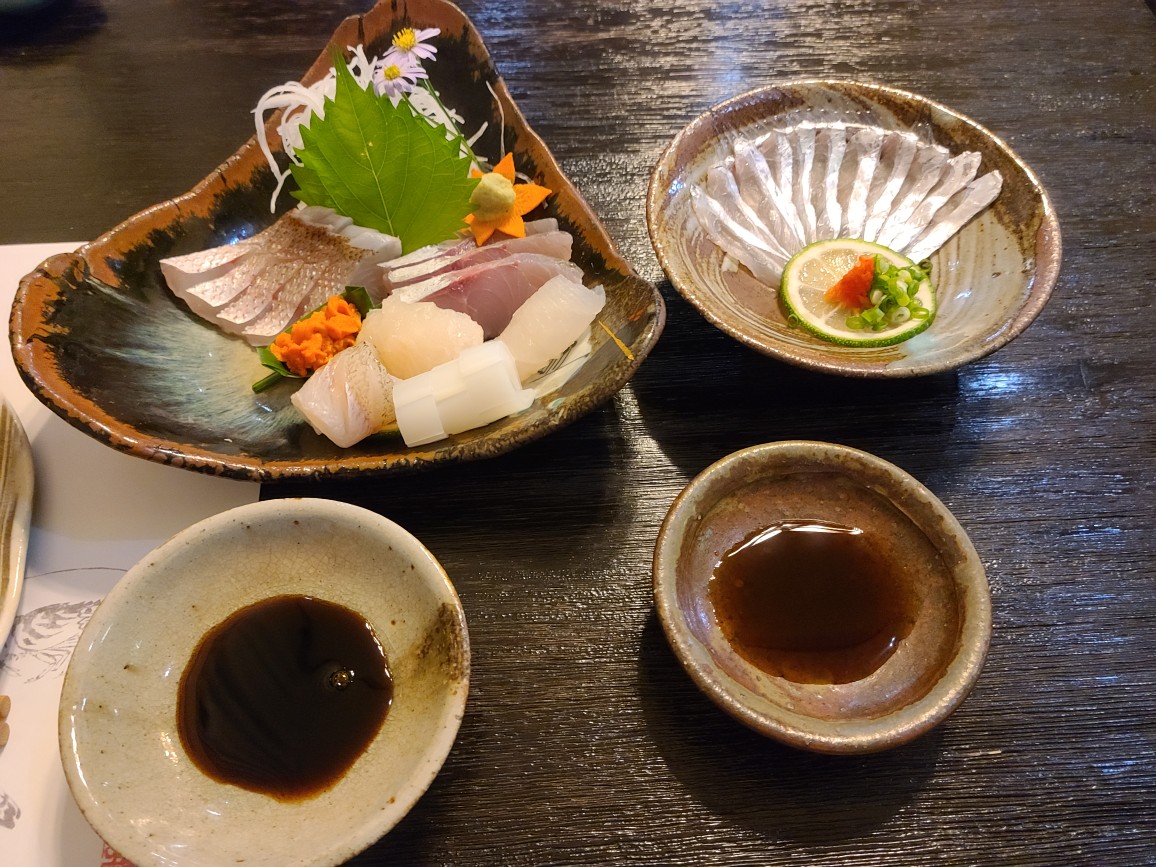 宿泊先の夕食 お造り 太刀魚の薄造り |