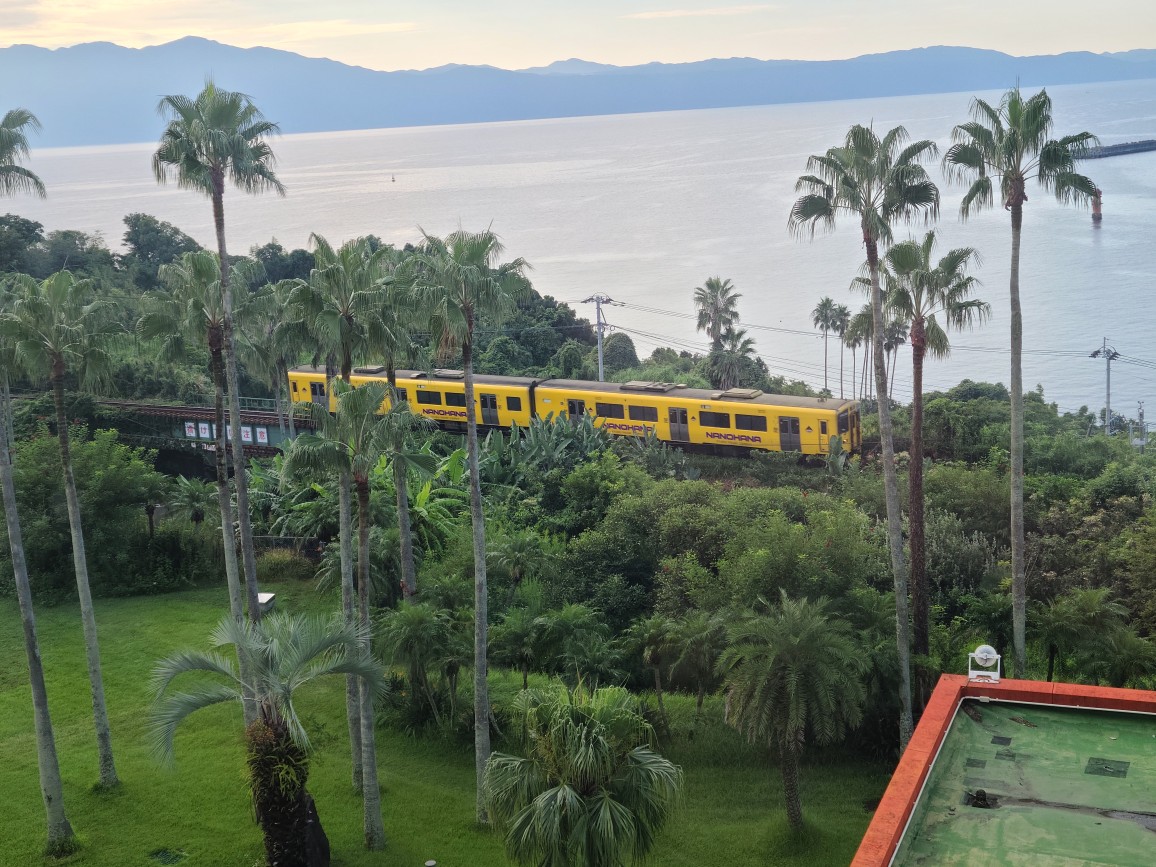 桜島をバックに一枚 鹿屋市でヒラマサを食べて来ました |