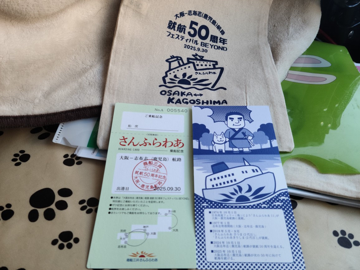 大阪~志布志市50周年記念 さんふらわあに乗船し記念品 |